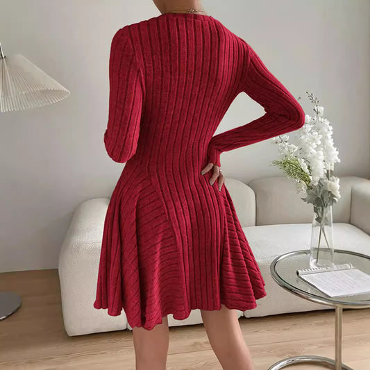 Women's French Knitted Long-sleeved Dress Short Skirt