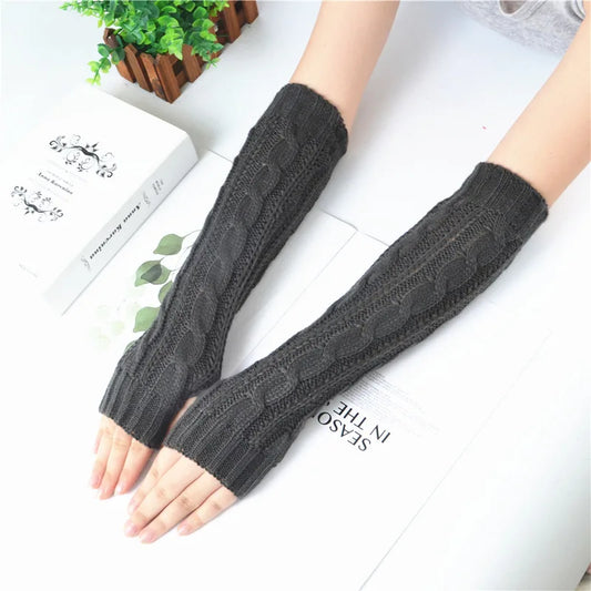 Women's Long Fingerless Gloves Winter Punk Warm Oversleeves Knitted Half Finger Twist Arm Sleeve Mitten Keep Warm Arm Warmer