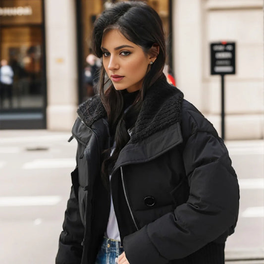 Women's Winter Jacket 2025 Women's Short Cottn Jacket Female Knitted Lapel White Parkas Coats Girl Thicken Warm Bread Jacket