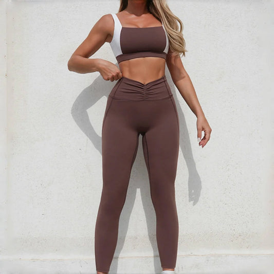 Yoga Sets Sports Fitness High Waist Hip Lift Breathable 2pc Set Workout Clothing Gym Leggings Tracksuit for Women