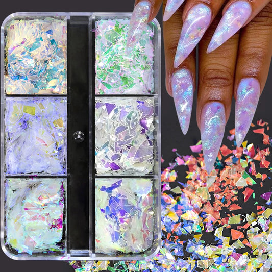 12 Colors AB Mermaid Nail Sequins Decorations Irregular Glitter Flake Nail Supplies Iridescent Aurora Glass Paper Nail Art Decal