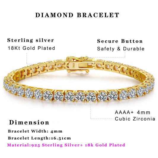 jiamiaoi Tennis Armband Damen Gold Tennis Armband Sterling Silber Armband Damen Diamant Tennis Armband Zirkonia Armband Gold Tennis Armband Damen Frauen 16.51cm