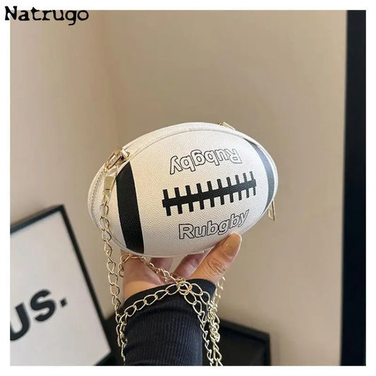Cute Cartoon Rugby Style Crossbody Bag For Women 2024 New Shoulder Bags Purses And Handbags Leather Designer Ball Chain Bag