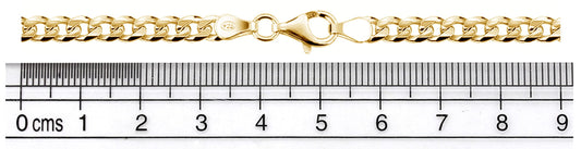 AKA Gioielli® - Herren Damen Kette 18 Karat Gold Vergoldet 925 Sterling Silber - Cuban Panzerkette 4mm mit Diamant-Finish auf einer Seite - 55 cm lang