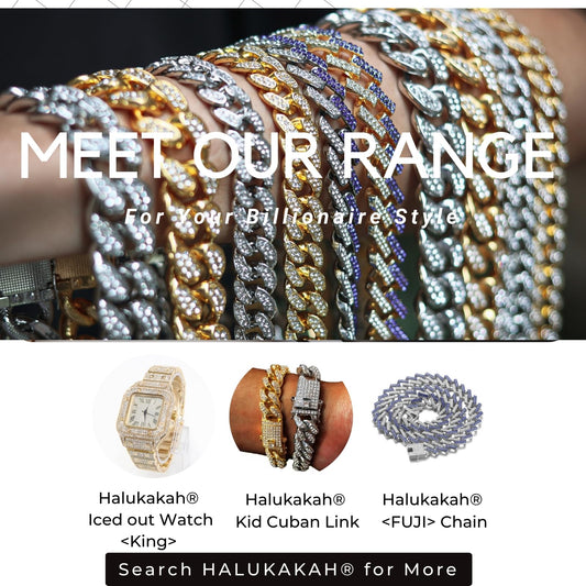 Halukakah Herren Premium Diamantverschluss Geclusterte Diamanten-Tenniskette - Halskette mit 18 Karat Echtgoldplattierung 50cm - Handgefasste Quadratische Labordiamanten - Glänzen Sie bei Jedem Anlass