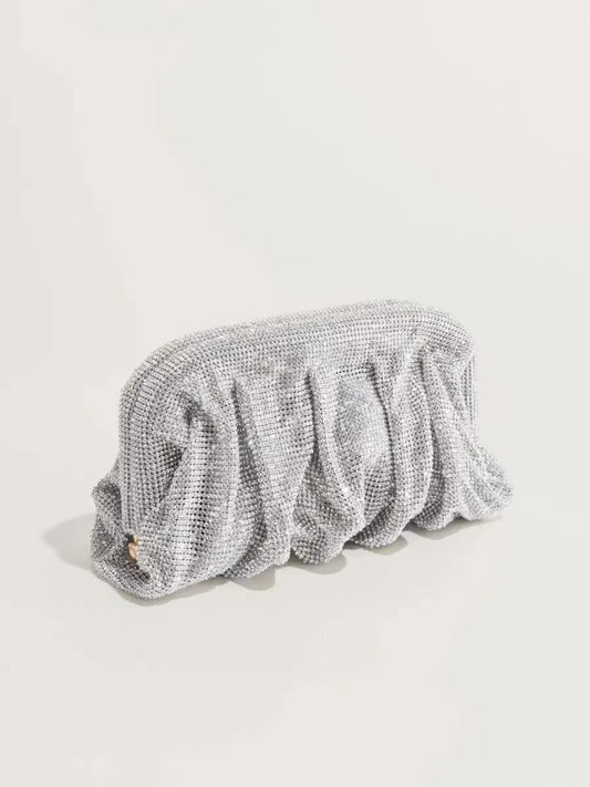 Shiny Silver Rhinestone Clutch Bags Women 2023 Luxury Designer Trending Boutique Folds Crystal Purses and Handbags Wedding Party