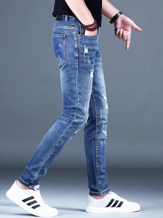 Men's Ripped Slim Jeans Fashion Casual Ankle Banded Pants