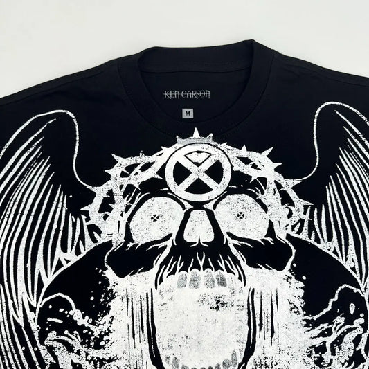 Fully printed graffiti black short-sleeved 2024 new trend fashion retro gothic street round neck mid-length T-shirt couple tops