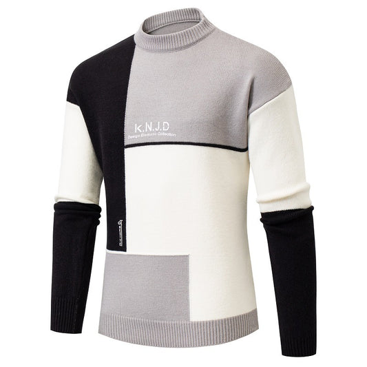 Knitwear Men's American Retro European Size Color Matching Casual Coat Autumn And Winter New Round Neck Sweater