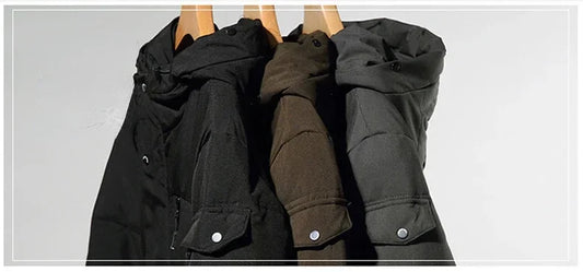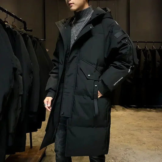 Men's Parkas Hooded New Over-the-knee Overcoat Thickened Mid-length Jacket Zipper Buttons Winter White Duck Down Jackets