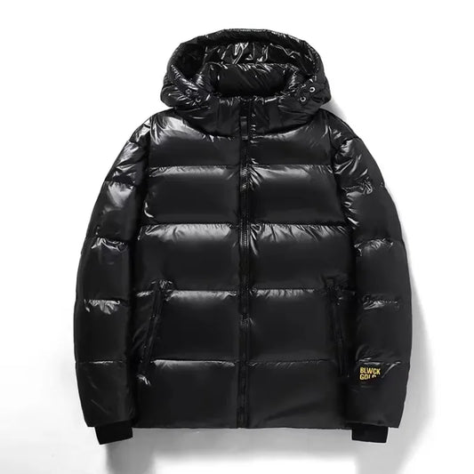 New Winter Men Hooded Shiny Down Jackets Casual Down Coats High Quality Male White Duck Down Outdoor Windproof Warm Jackets 4XL