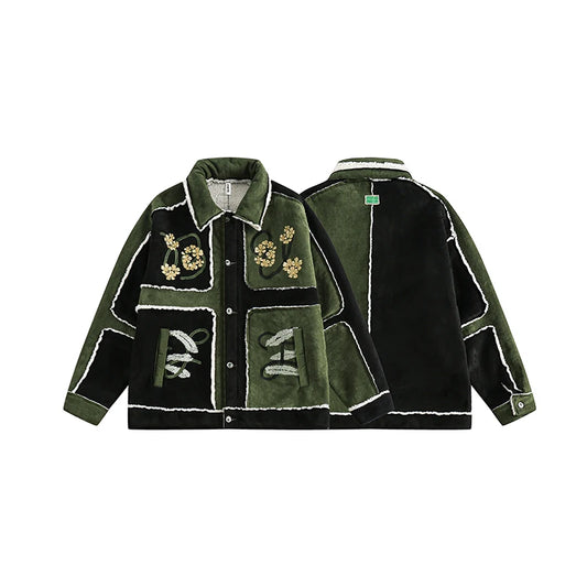Men's Cotton-padded Jacket New Style Men's Embroidery Color Patchwork Parkas Men's Winter Thickened Senior Sense Suede coat