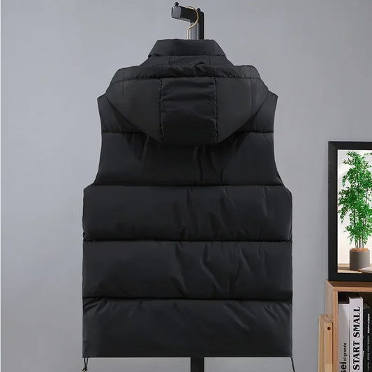 New in Padded Vest Men Winter Hooded Zip-up Turtleneck Sleeveless Jacket Male Cotton Down Autumn Warm Pocket Work Wear Waistcoat