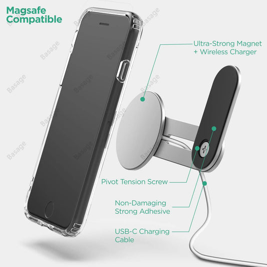 Laptop Phone Holder, 15W Wireless Charging Monitor Stand, Magnetic Laptop Phone Mount, Foldable Monitor Side Mount Bracket