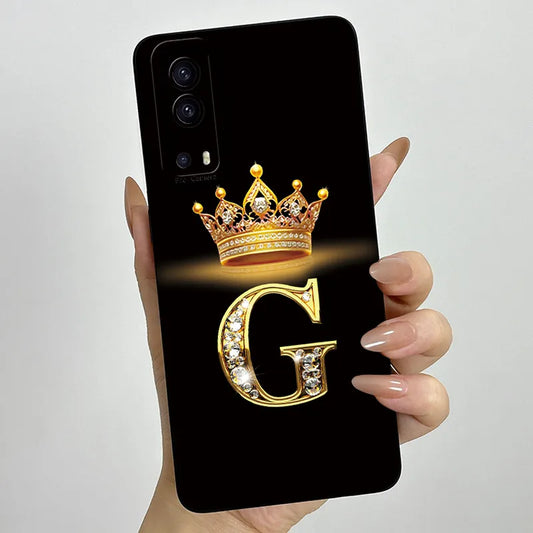 For Vivo Y72 5G V2041 Case Crown Letters Liquid Silicone Soft Phone Cases For Vivo Y52 5G V2053 Y72 Camera Protection Back Cover