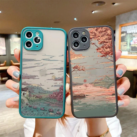 Japan Anime Landscape Phone Case For iPhone 16 15 11 13 12 14 Pro Max Mini 7 8 Plus SE 16E Scenery Hard Matte Cover Fundas Skin