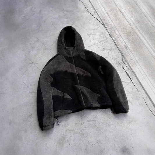 Street Wear Men's and Women's Zipper Hooded Men's Wool Jacket Autumn Winter American Retro Lamb Wool Splicing Windproof Jacket