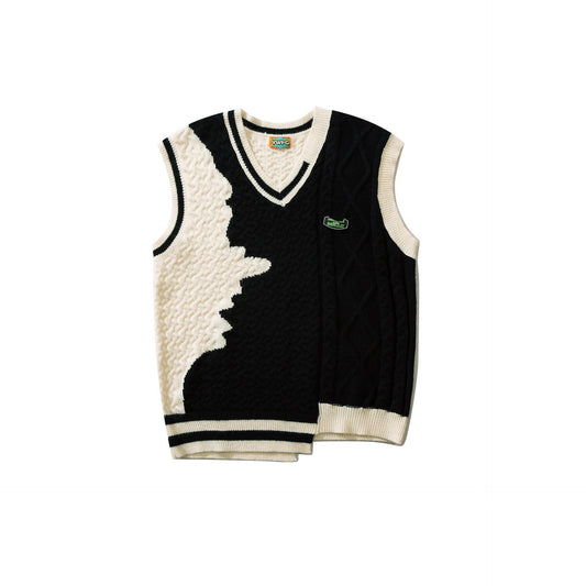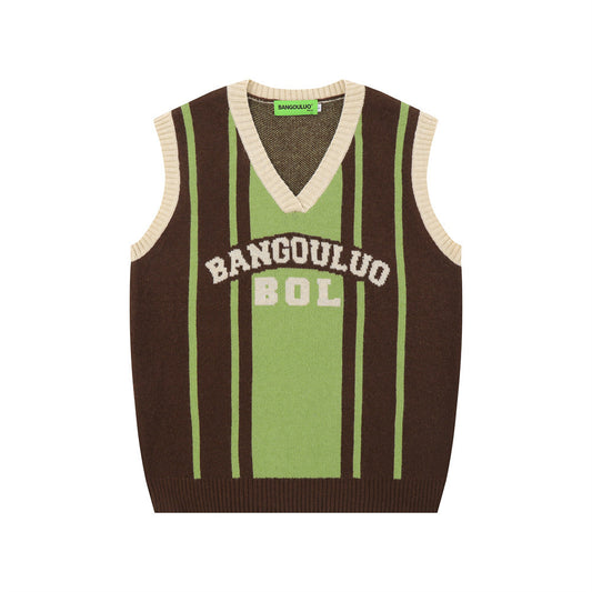 European And American Street Color Matching Letters Jacquard V-neck Sweater Vest
