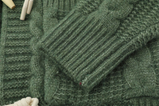 Twist Horn Button Cardigan Hooded Sweater Coat Lazy