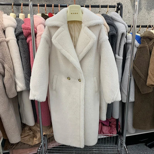 Women's Thick Warm Teddy Coats, Real Wool Long Coats, Lady Luxury Outerwear, Natural Fur, S7480A, Winter, 2022