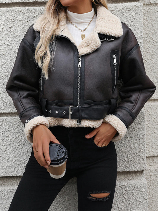 Fitaylor Autumn Winter Women Faux Lambswool Leather Jacket Casual Lady Thick Warm Short Coat High Street Leather Outwear
