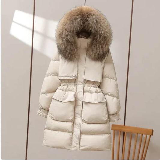OFTBUY 2023 Real Fox Fur Raccoon Fur Collar Hooded Winter Jacket Women Thick Warm Duck Down Long Streetwear Outerwear Detachable