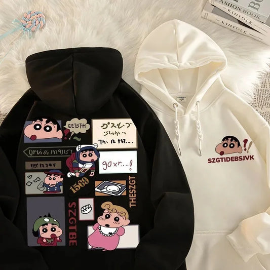 Anime Cartoon Crayon Shin chan Hoodie Couple Style Fashionable Casual Cute Plush Hoodie Autumn/Winter New Loose Shoulder Top