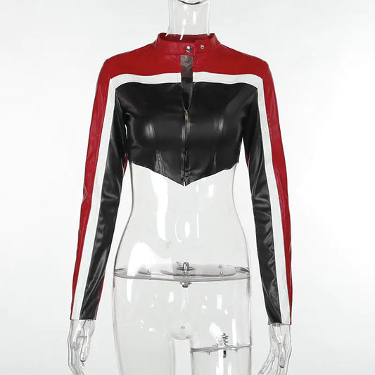 Wild Ride Moto Faux Leather Contrast Cropped Jacket