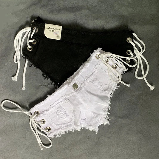 Summer Ripped Side Corns Bandage Denim Shorts Women's Street Fashion Hot Short Jeans Hollow Out Sexy Shorts Female Plus Size