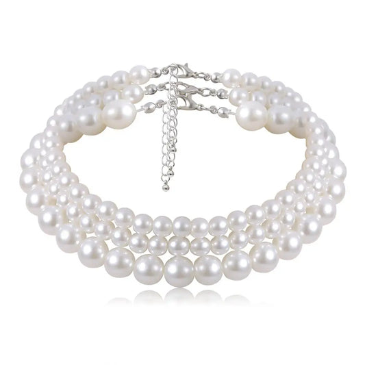 Multi-Layer White Imitation Pearl Necklace Bead Chain Punk Ladies Wedding Short Clavicle Necklac Girl Charm Banquet Jewelry