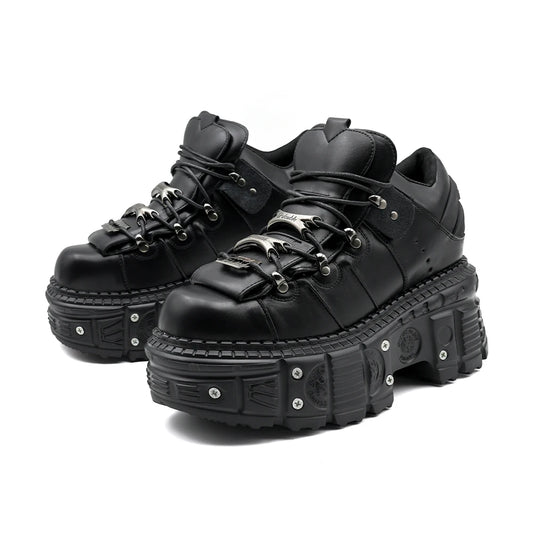 2025 New Brand Punk Style Women Shoes Lace-up heel height 6CM Platform Shoes Woman Rock Boots Metal Decor Woman Sneakers