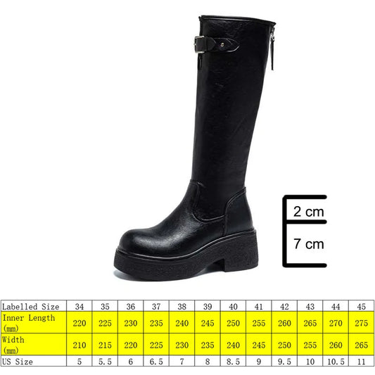Platform Women Knight Long Boots Fashion Warm Fur Shoes Autumn Winter Square Heels Ladies Knee High Booties