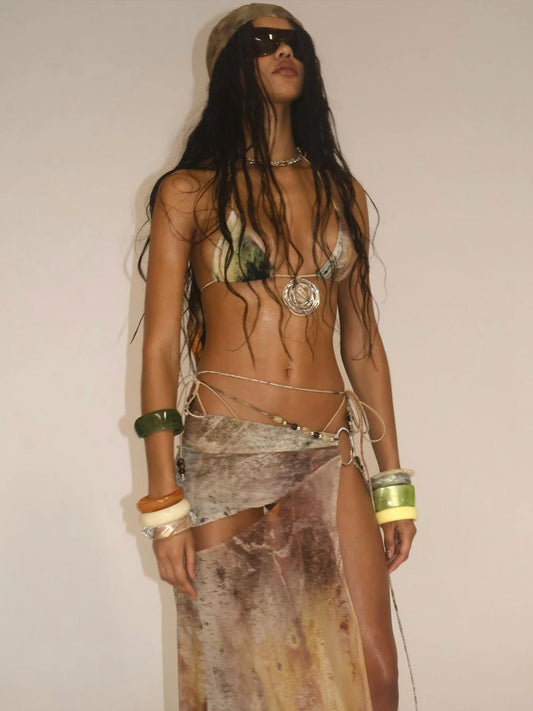 2025 New Sexy Print 3 Pcs Bikini With Skirt Print Halter Bikini Set Summer Women White Tube Top with Skirt Suit Female
