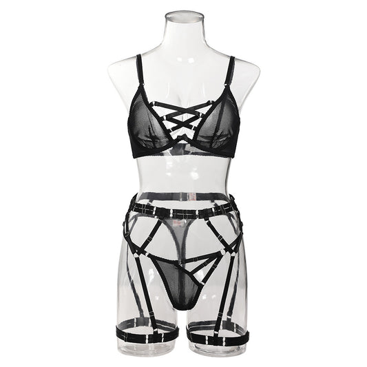 Unterwäsche Mesh Stitching Wimpern Spitze Lanyard Schmetterling Vierteiliges Set