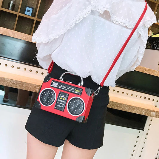Unique Retro Radio Box Bag Ladies Leather Handbag Shoulder Bag Metal Handle Purse Women's Crossbody Messenger Pouch Flap Bolsas