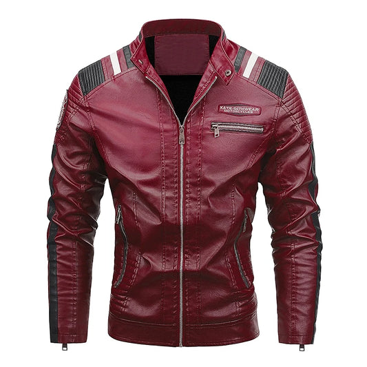 2023 männer Herbst Jacke Bomber Biker Zipper Motorrad Faux Pelzmantel Männlichen Fleece Pilot Vintage Schwarz Rot Braun PU Leder jacke