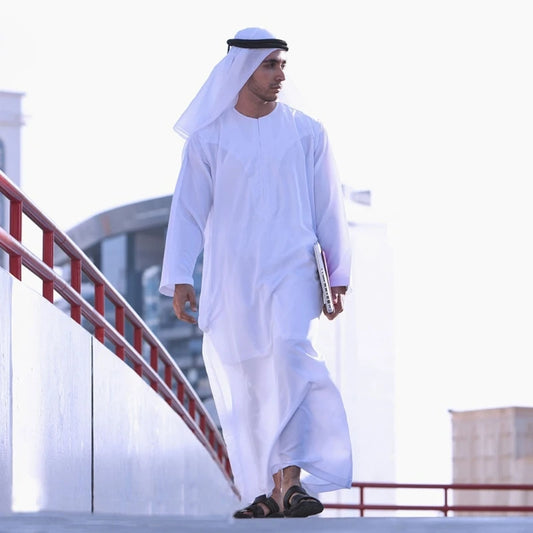2023 New Ramadans Muslims Dress Abayas Dubai Casual Kaftan Robe Islamic Costume with Arab Head Scarf Keffiyeh Set Gifts for Men