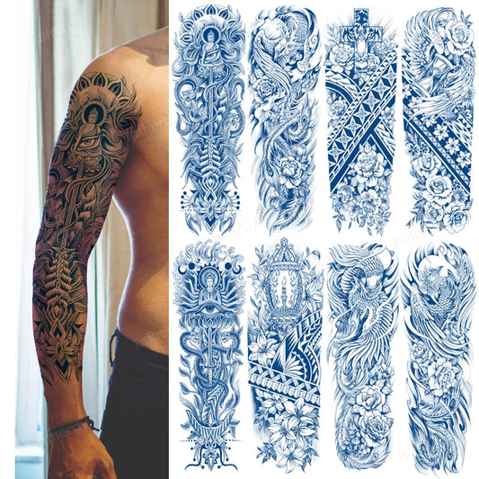 Waterproof Temporary Tattoo Sticker Full Arm Large Skull Old School Tatoo Stickers Flash Fake Tattoos for Men Women
