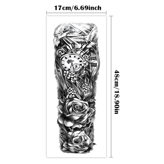 Large Full Arm Sleeve Waterproof Temporary Tattoo Sticker Leopard Flower Dove Of Peace Clock Thorn Fake Tatoo Body Art Men Women