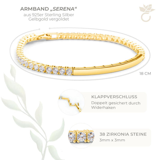 Amoonic Damen Armband Gold mit Gravur | Tennisarmband mit Zirkoniasteinen | Personalisierte Armkette für Frauen als Geschenk für Mutter Tochter Freundin