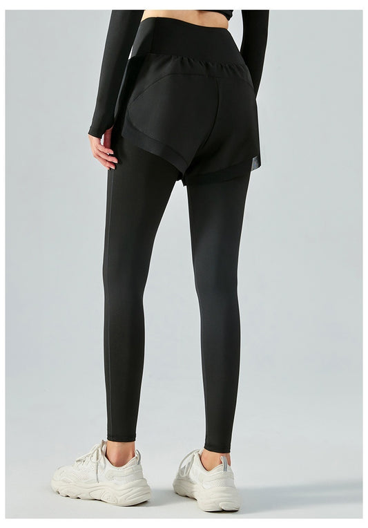 Elastische, hoch taillierte, zweiteilige Anti-Exposure-Leggings aus Mesh
