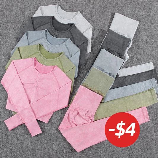 NORMOV 2Pcs Gym Frauen Sets Nahtlose Yoga Set Hohe Taille Gym Sportwear Push-Up Sport Workout Sets Fitness Lange hülse Gym Anzug