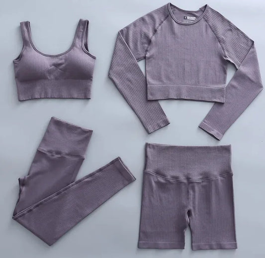 Yoga Suits Women Fitness Wear Gym Set Sports Outfits Training Exercise Workout Pants Long Sleeve Crop Top Bra Womens Tracksuits