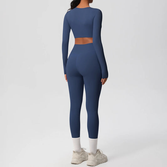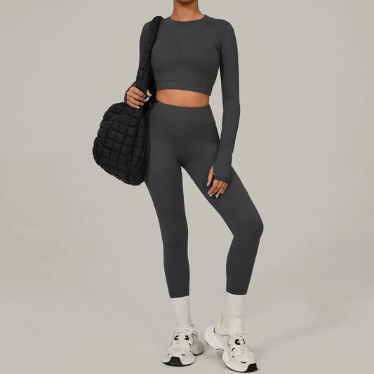 Seamless Yoga Sets Sports Tops Fitness High Waist Hip Lifting Pants Long-Sleeved Suit Running Workout Gym Leggings Set for Women
