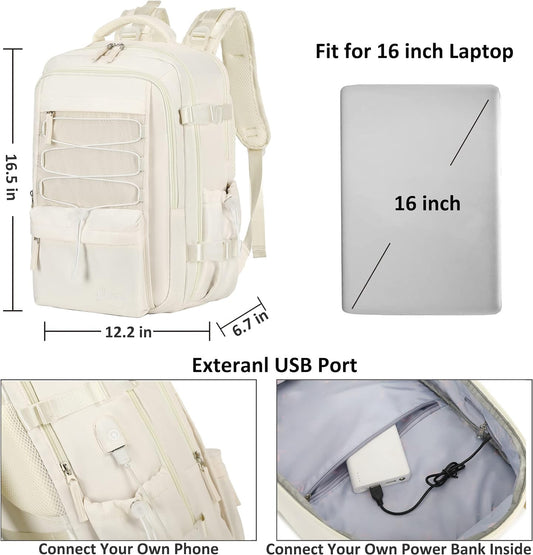 Reiserucksack für Damen und Herren, 15,6-Zoll-Laptop-Rucksäcke mit USB-Anschluss, Handgepäck-Rucksack, flugzugelassen, großer Rucksack, College-Büchertasche, Outdoor-Sport-Wanderrucksack, lässiger Tagesrucksack (weiß)