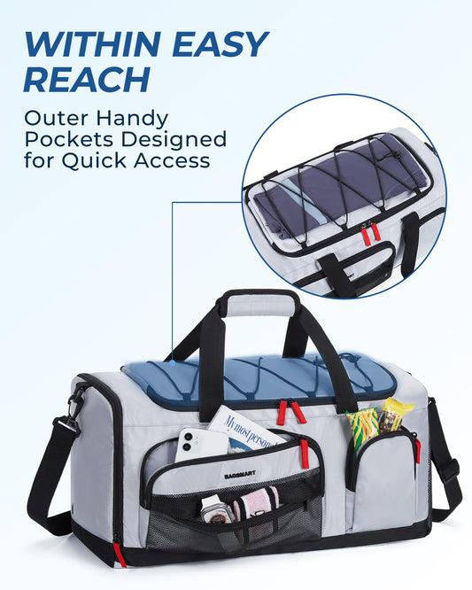 BAGSMART Sporttasche für Damen und Herren, 35 l Sport-Reisetasche mit Schuhfach, diebstahlsichere Wochenendtasche fürs Flugzeug, wasserabweisender Workout-Rucksack für die Nacht für das Reisen im Fitnessstudio, Grau