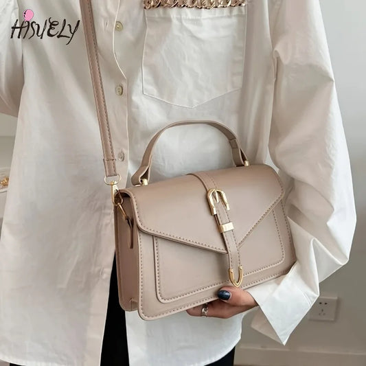 Fashionable Minimalist Crossbody Bag with Top Handle Flap for Women Solid Color Square Purse with Simple Design Shopper Purses