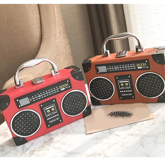 Women Radio Shoulder Bag PU Leather Crossbody Bag Evening Handbag Purse