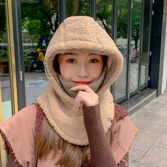 Lamm Flauschige Mütze Damen Herbst Und Winter Koreanischer Stil Warmer Ohrenschutz Strickmütze Verdickte Frostschutz-Fahrradmütze