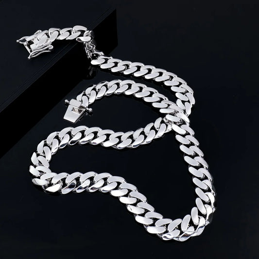 Heavy Metal Style 925 Sterling Silver Hiphop Jewelry Rhodium Plated 18mm Plain Cuban Link Chain Necklace for Rapper
